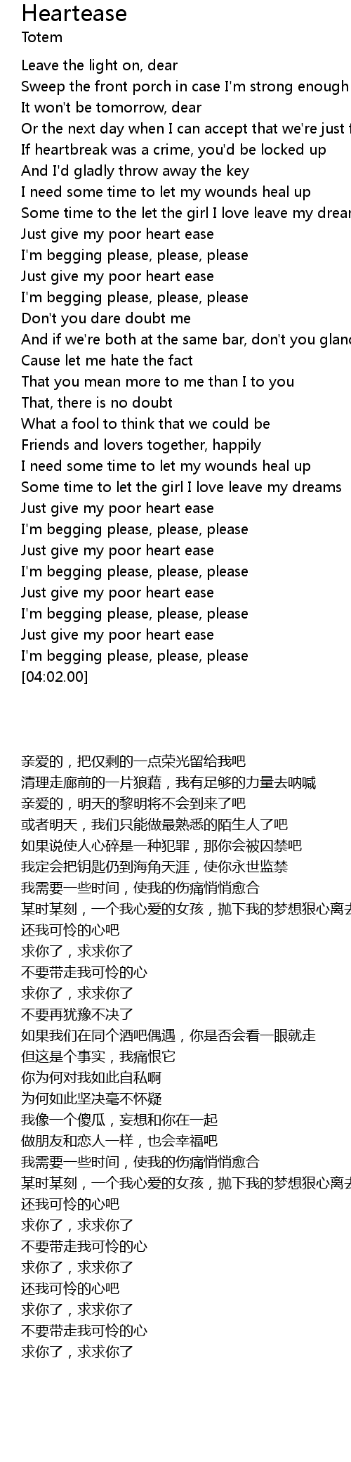 | [03:47.47] | Just give my poor heart ease |