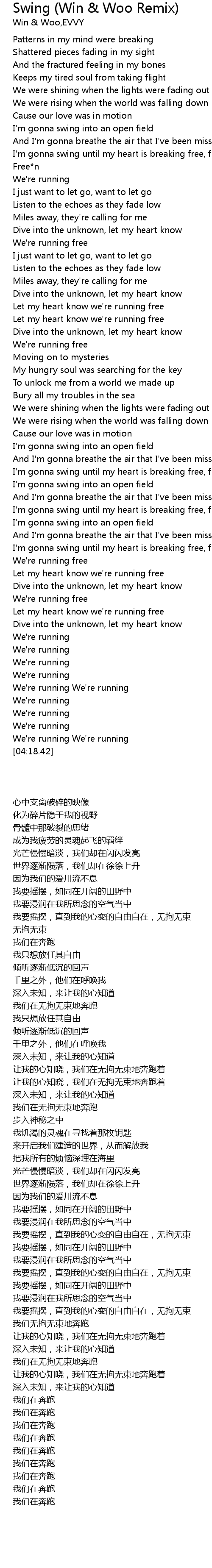 | [02:48.30] | I'm gonna swing until my heart is breaking free, free |