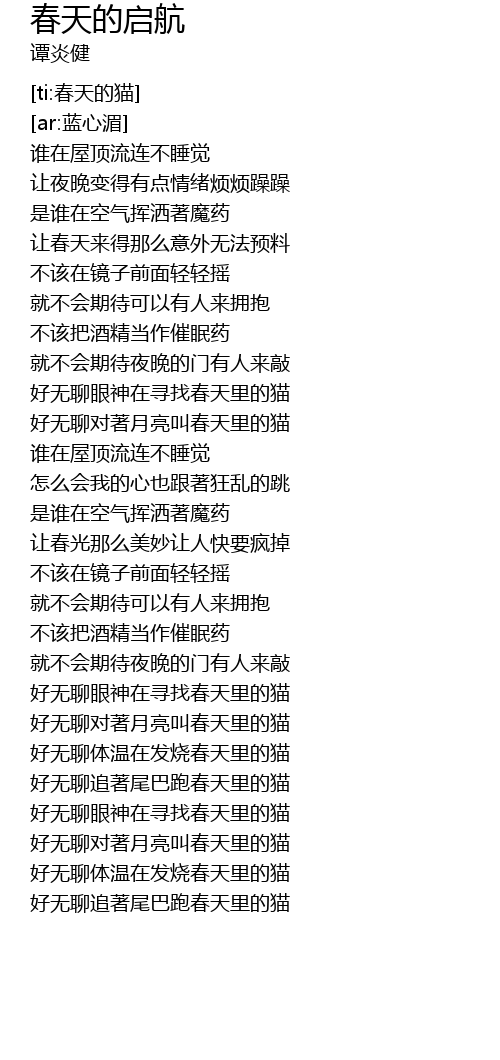 | [00:50.688] | 好无聊眼神在寻找春天里的猫 |