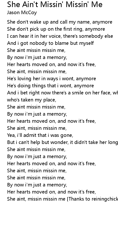 She aint, missin missin me [Thanks to [email protected] for lyrics] |
