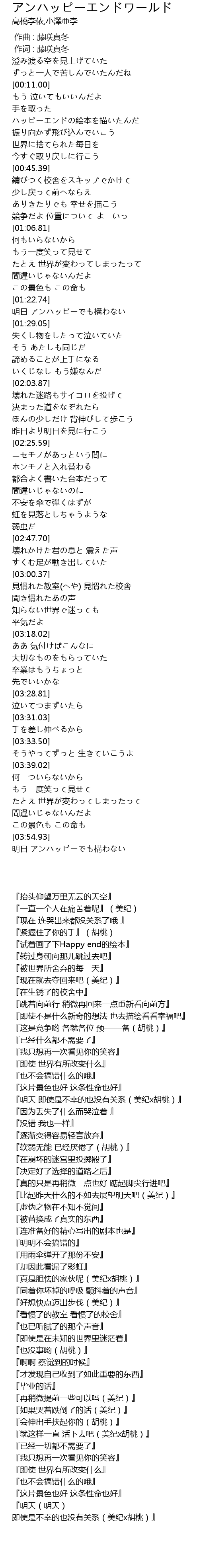 | [03:08.18] | 見慣れた教室(へや) 見慣れた校舎 |