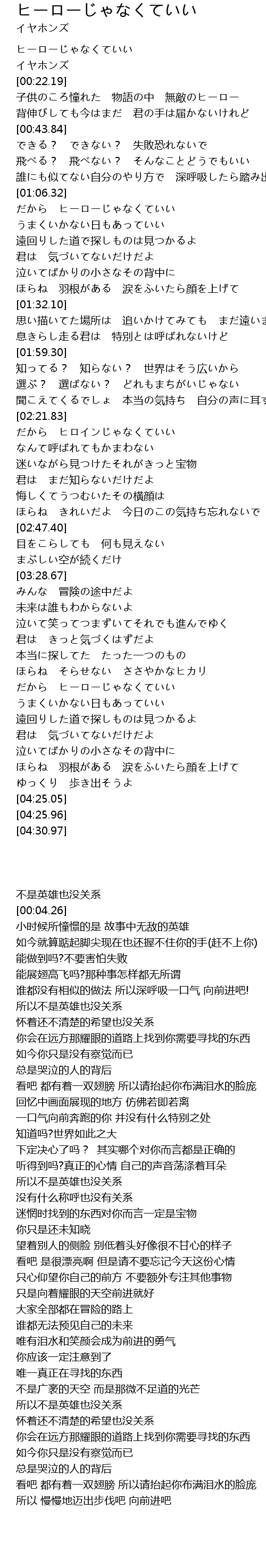 | [00:00.00] | ヒーローじゃなくていい |