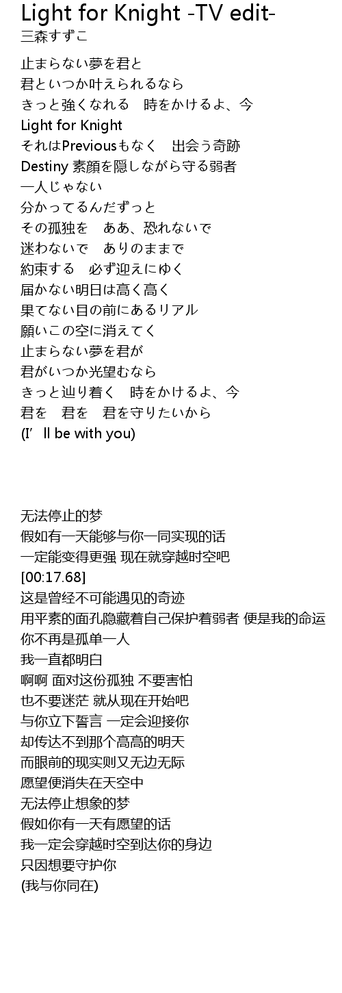 | [00:12.83] | きっと強くなれる 時をかけるよ、今 |