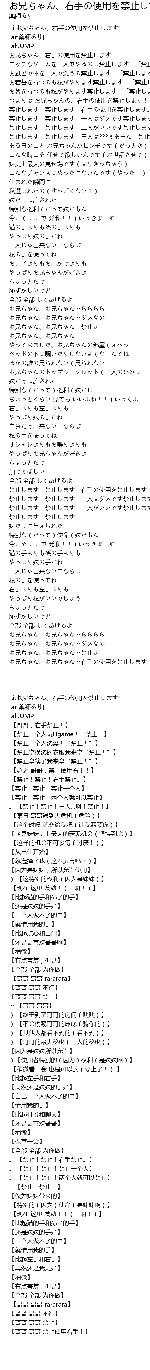 | [ti:お兄ちゃん、右手の使用を禁止します!] | |