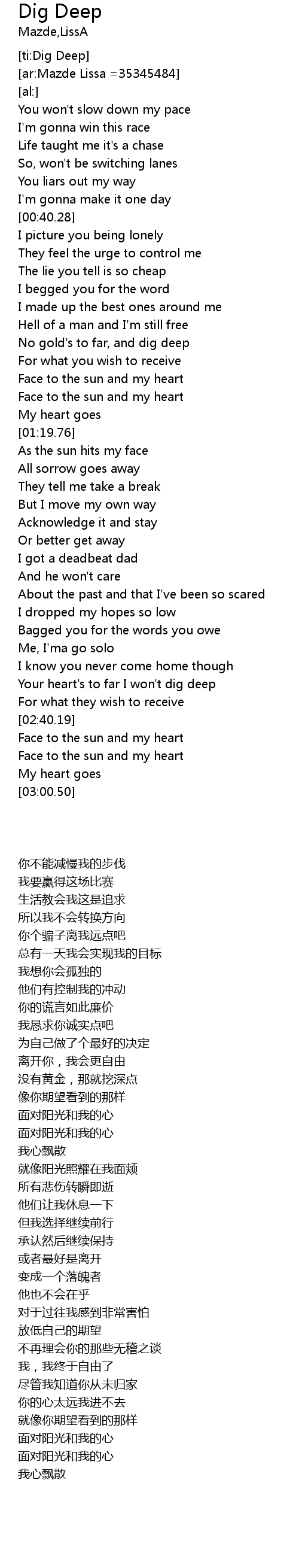 | [02:35.98] | Your heart's to far I won't dig deep |