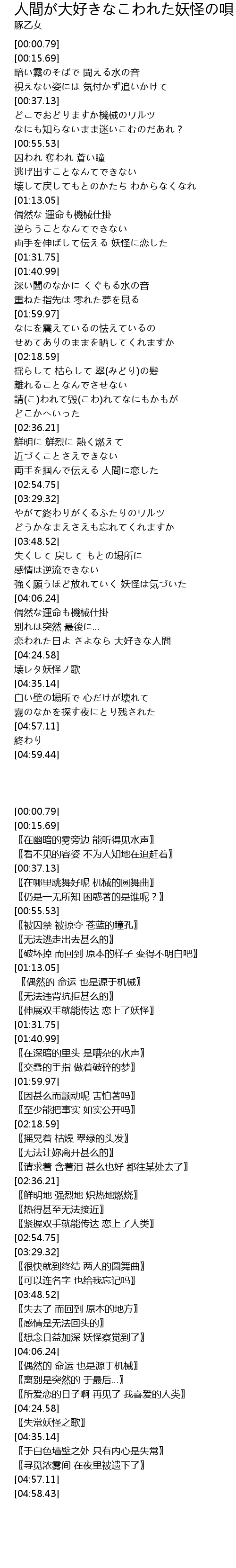| [04:25.70] | 壊レタ妖怪ノ歌 |