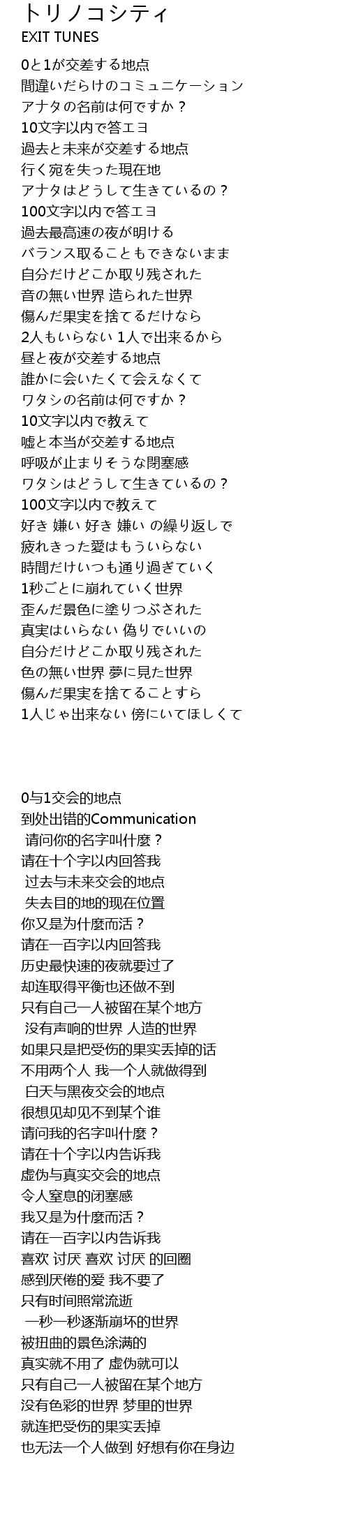 | [01:46.95] | 嘘と本当が交差する地点 |