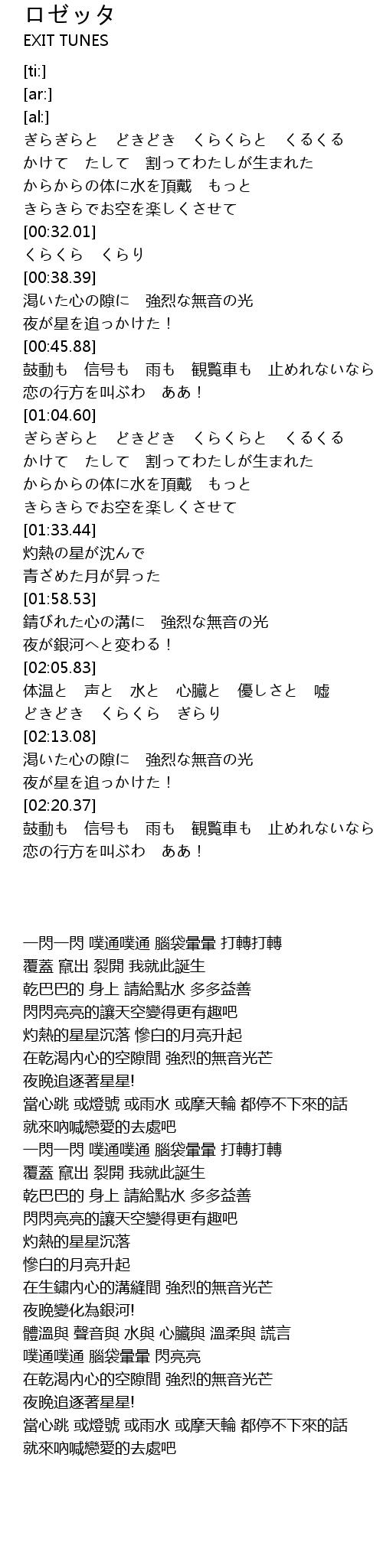 | [02:09.91] | どきどき くらくら ぎらり |