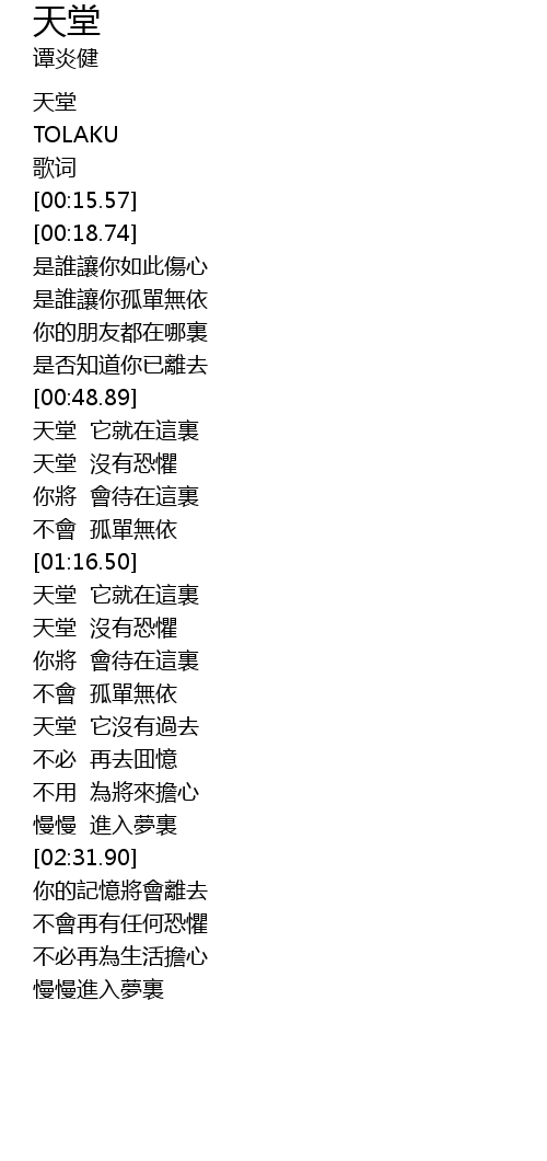 | [01:41.15] | tiān táng tā jiù zài zhè lǐ |