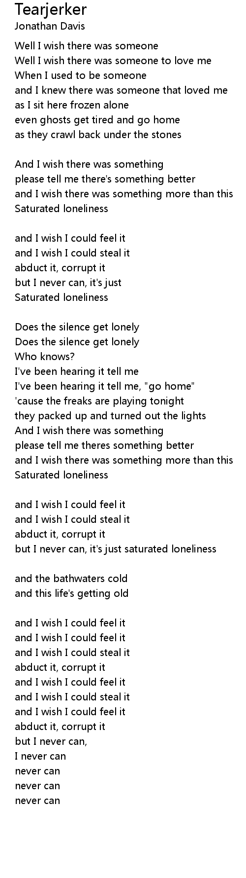 but I never can, it's just saturated loneliness |