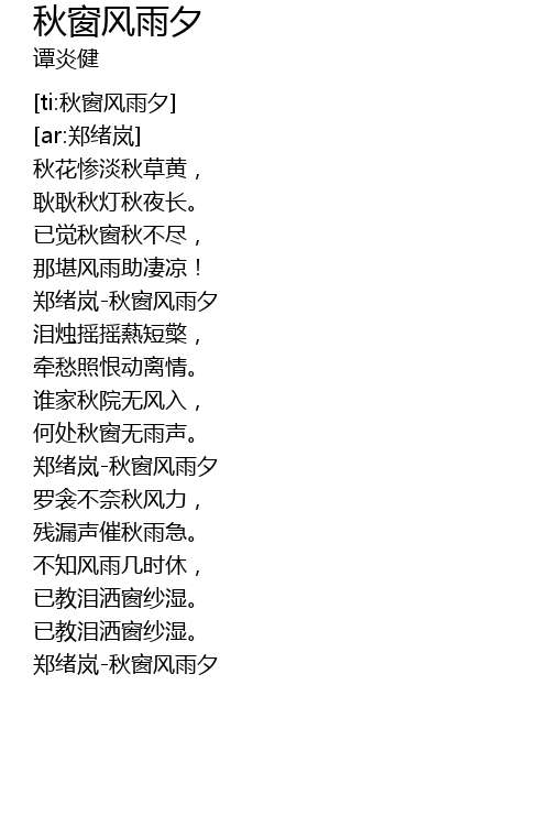 | [04:17.489] | 郑绪岚-秋窗风雨夕 |