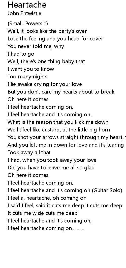 I feel a, heartache, oh coming on |