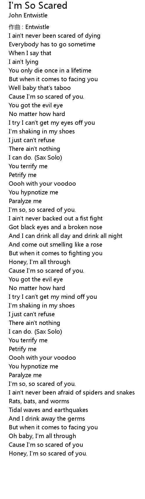 | Cause I' m so scared of you. | |