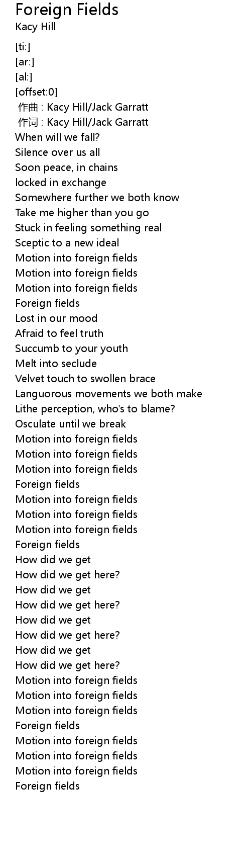 | [00:01.00] | zuò cí : Kacy Hill Jack Garratt |