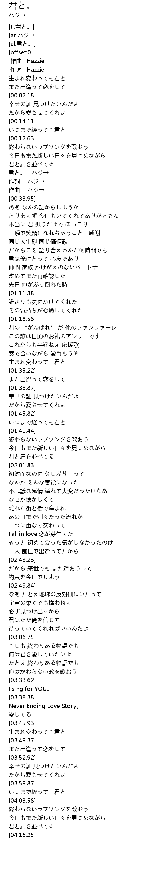 | [00:30.52] | 君と。 - ハジ→ |
