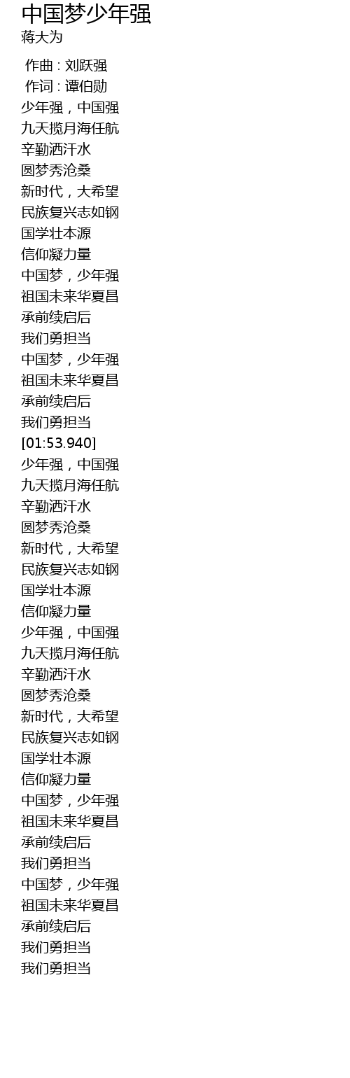 | [00:40.950] | shào nián qiáng, zhōng guó qiáng |