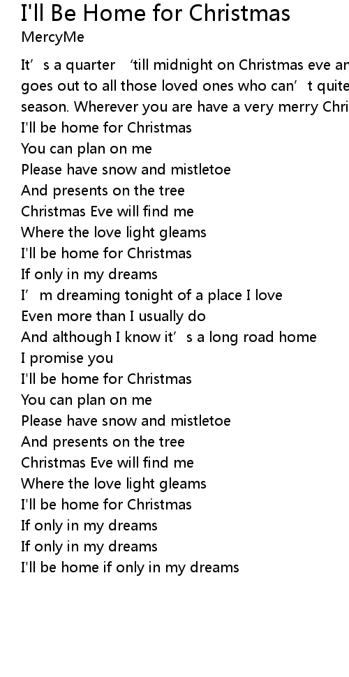 | [00:01.000] | It' s a quarter ' till midnight on Christmas eve and this next song goes out to all those loved ones who can' t quite make it home this holiday season. Wherever you are have a very merry Christmas |