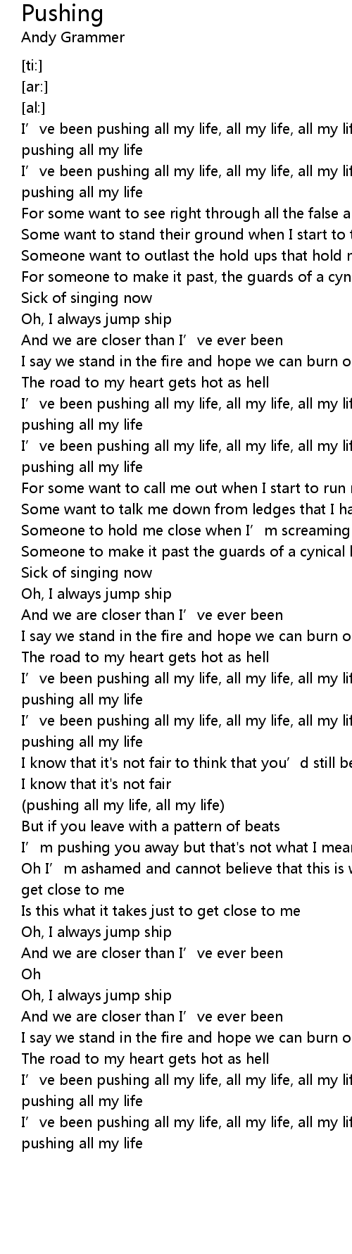 | [03:02.74] | I’ve been pushing all my life, all my life, all my life, I’ve been pushing all my life |