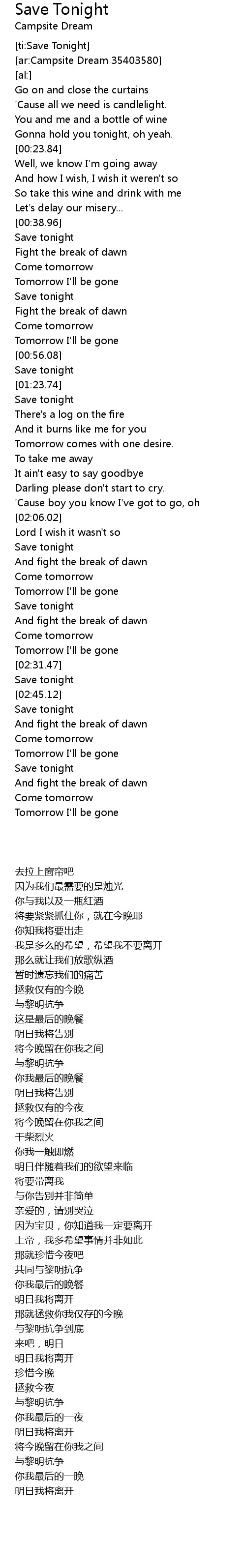 [ti:Save Tonight] |