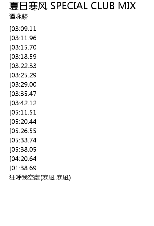 | Song | 夏日寒风 SPECIAL CLUB MIX |
