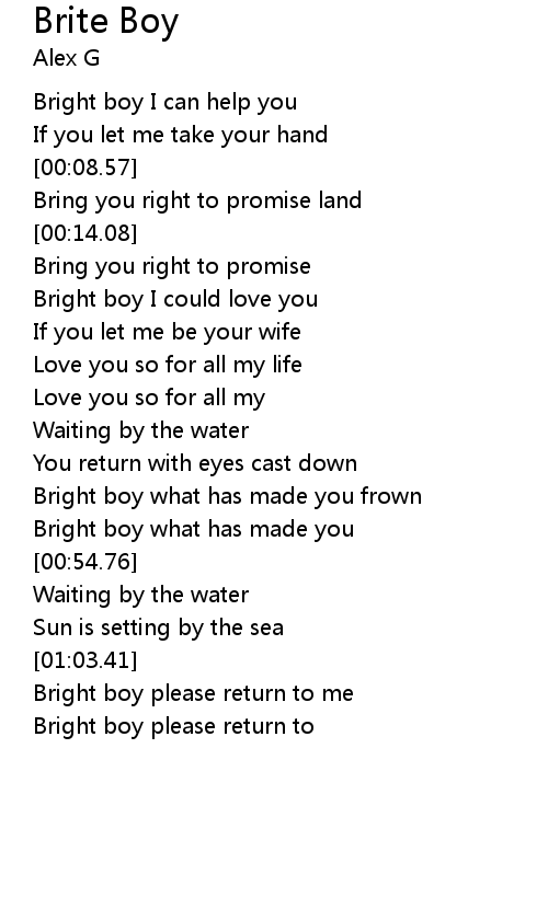 Bright boy please return to me |
