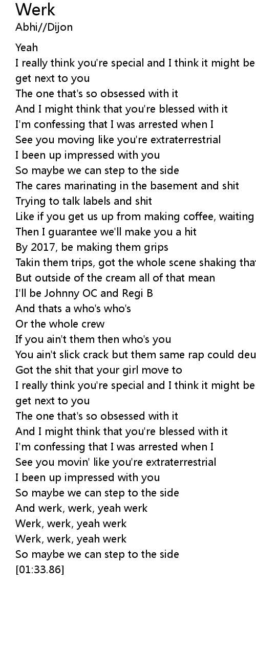 And werk, werk, yeah werk |