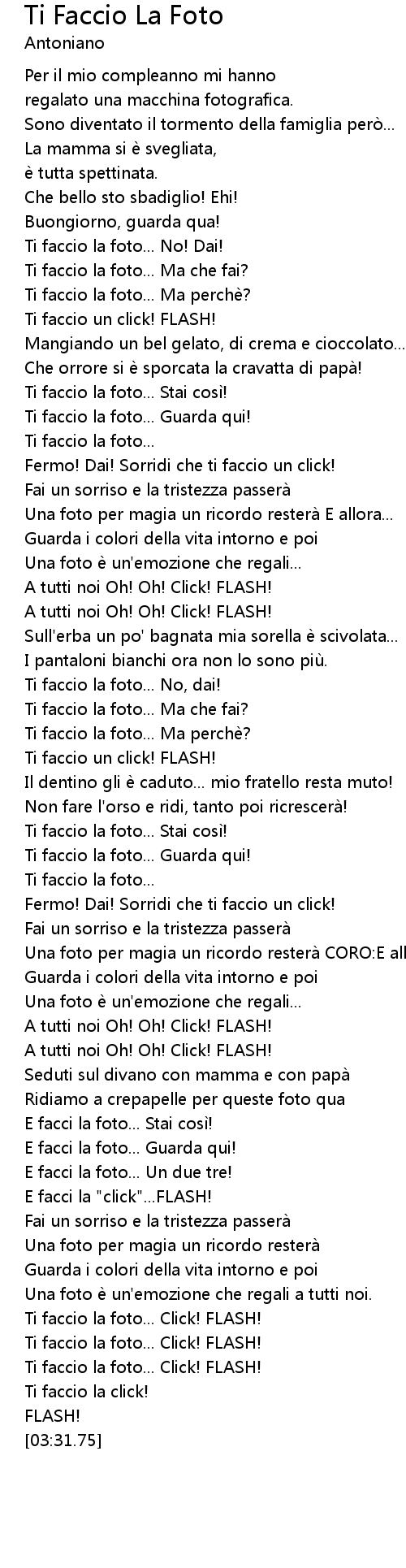 | [02:38.54] | A tutti noi Oh! Oh! Click! FLASH! |