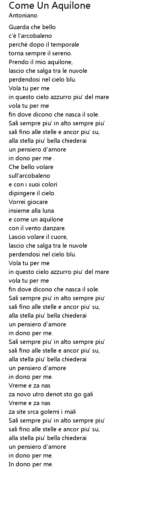| [02:13.12] | Sali sempre piu' in alto sempre piu' |