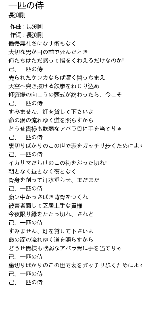 | [04:10.38] | 己、一匹の侍 |