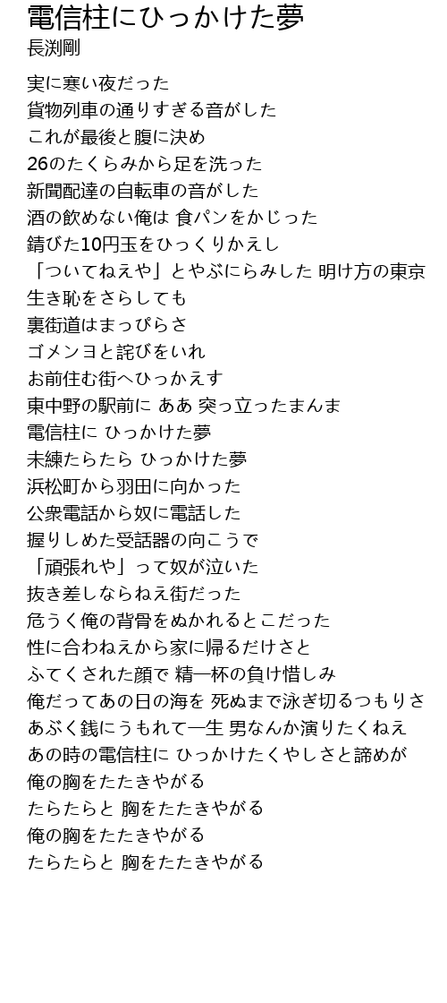 | [01:49.22] | 電信柱に ひっかけた夢 |