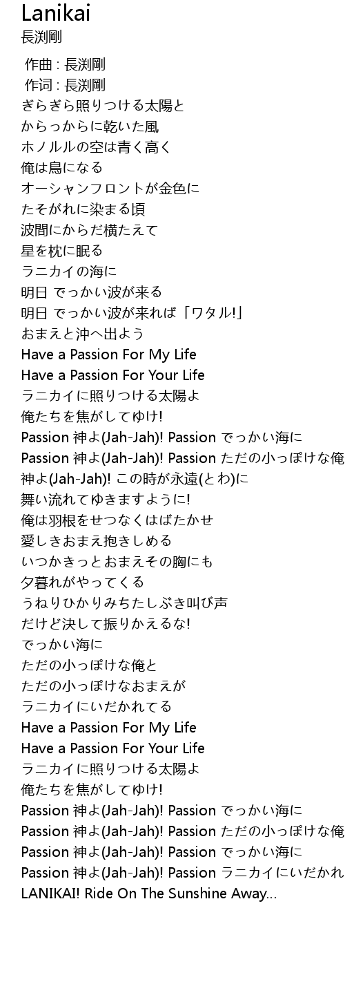| [03:58.99] | Passion 神よ(Jah-Jah)! Passion でっかい海に |