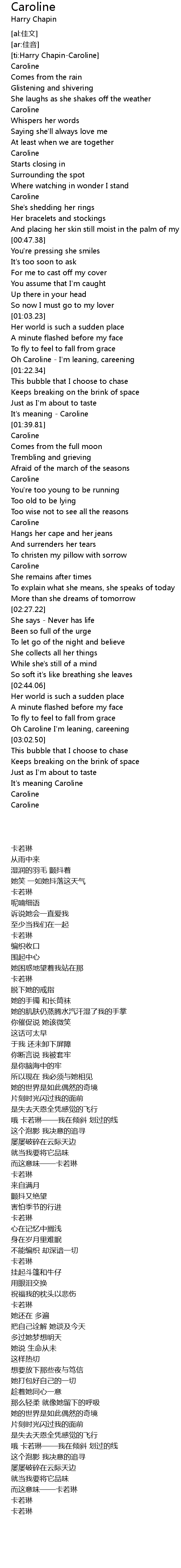 | [01:16.43] | Oh Caroline - I'm leaning, careening |