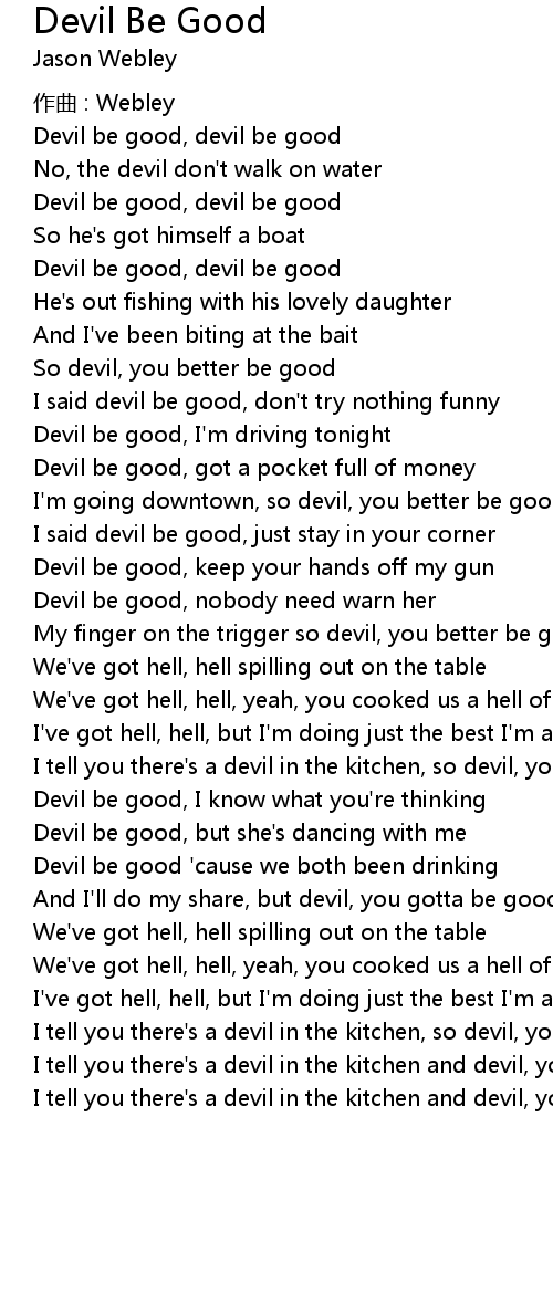 | Song | Devil Be Good |