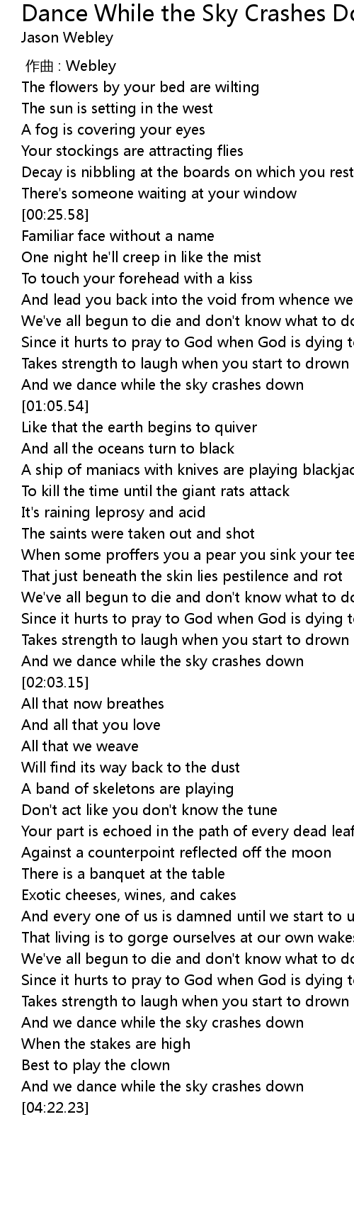 | [03:26.55] | We've all begun to die and don't know what to do |
