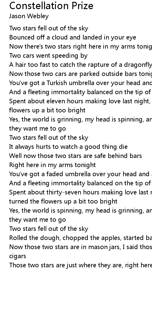 Those two stars are just where they are, right here in my arms tonight |