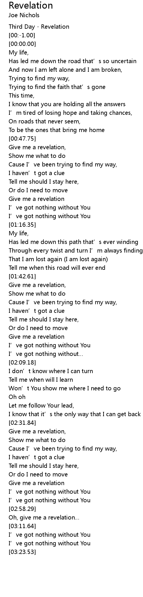 | [00:48.52] | Give me a revelation, |