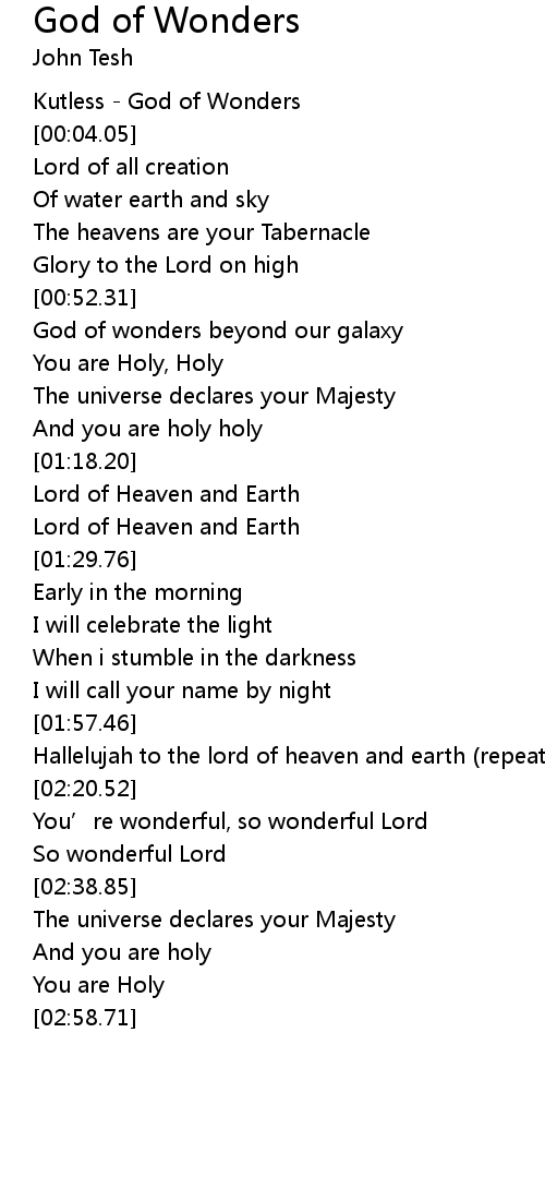 | [01:58.45] | Hallelujah to the lord of heaven and earth repeat |