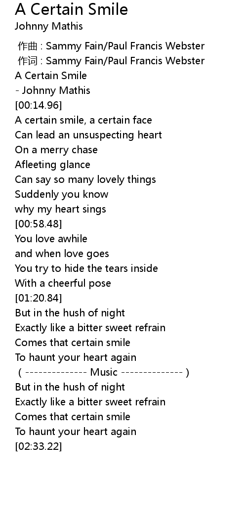 | [02:16.97] | Comes that certain smile |