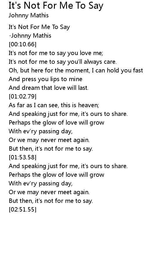 It's not for me to say you love me; |