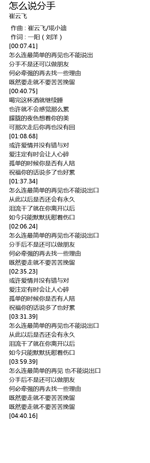 | [04:02.10] | zen me lian zui jian dan de zai jian ye bu neng shuo chu kou |
