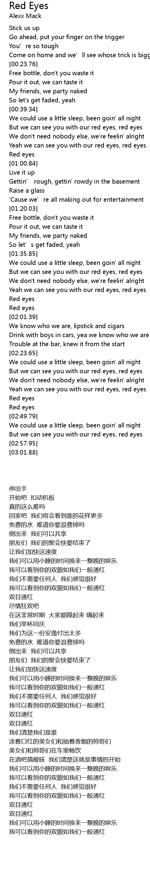 | [02:38.00] | Yeah we can see you with our red eyes, red eyes |