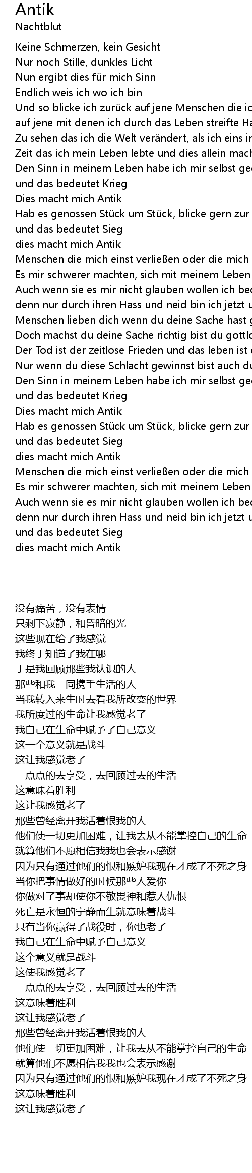 | [01:00.700] | Zeit das ich mein Leben lebte und dies allein macht mich Antik |