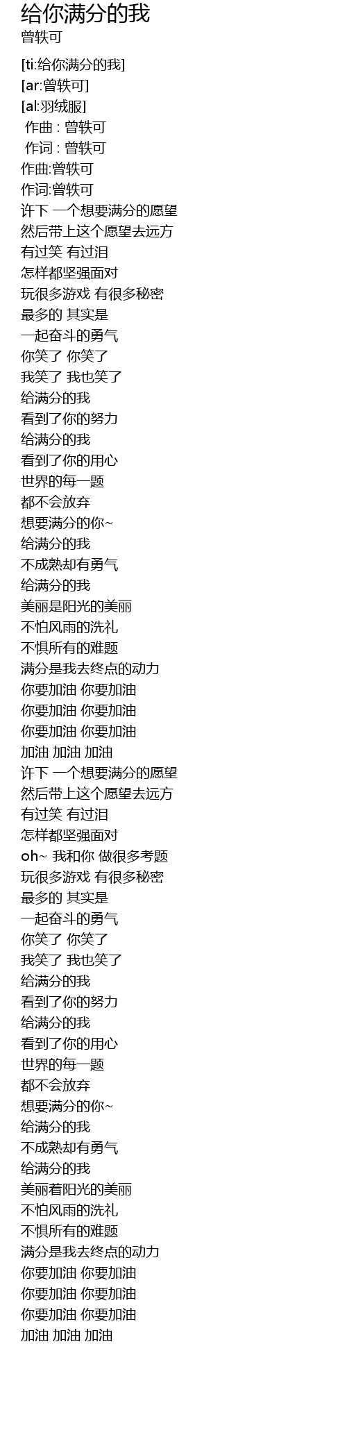 | [03:01.400] | 满分是我去终点的动力 |