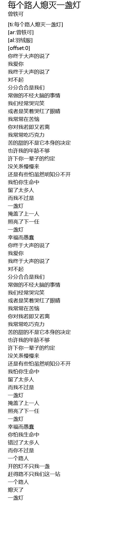 | [ti:每个路人熄灭一盏灯] | |