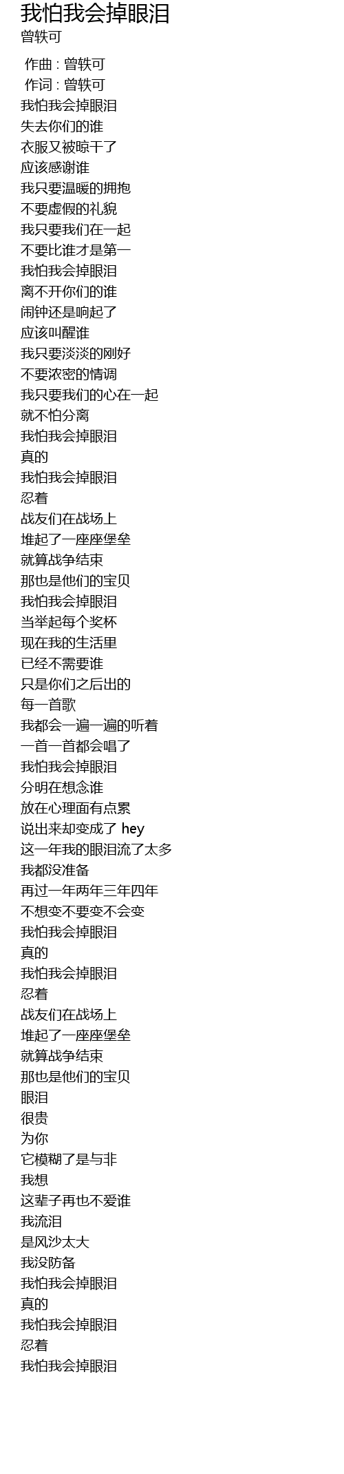 | [01:33.11] | wǒ pà wǒ huì diào yǎn lèi |