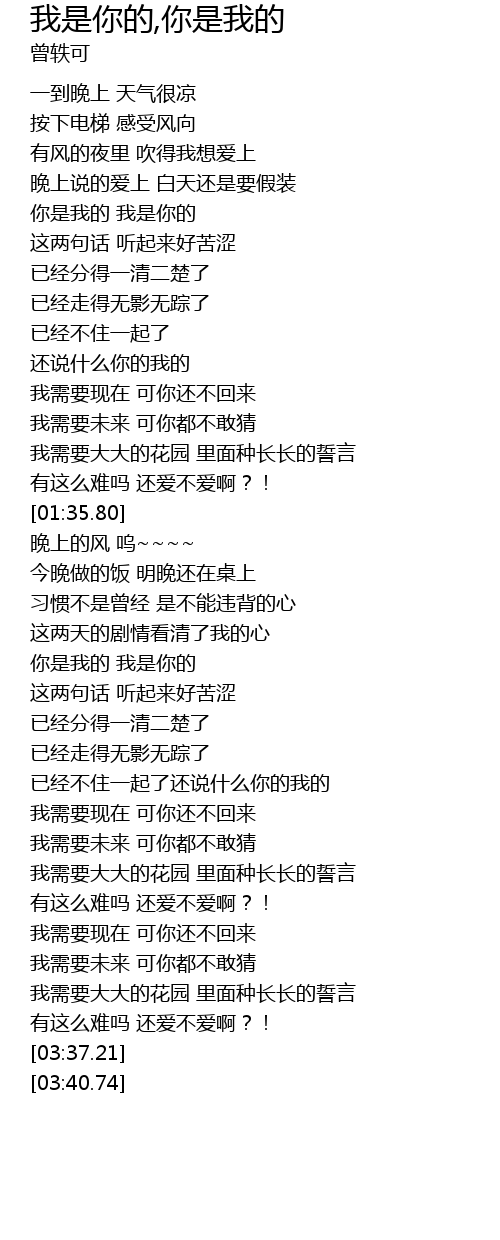 | [00:49.65] | nǐ shì wǒ de wǒ shì nǐ de |