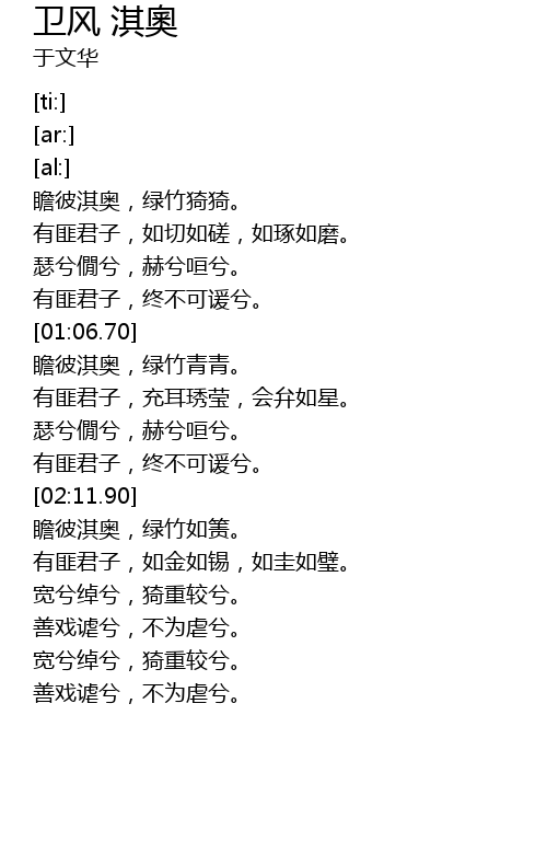| [02:28.00] | 有匪君子,如金如锡,如圭如璧。 |