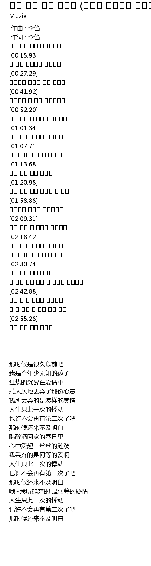| [00:01.00] | 作词 : 李笛 |