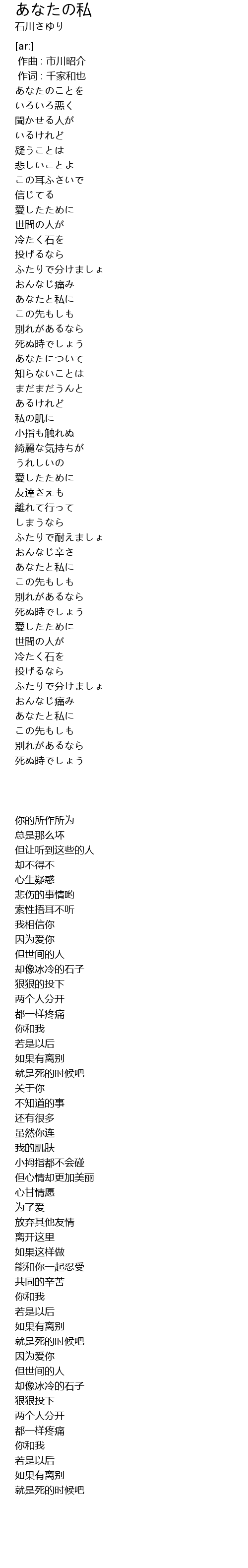 | Song | あなたの私 |