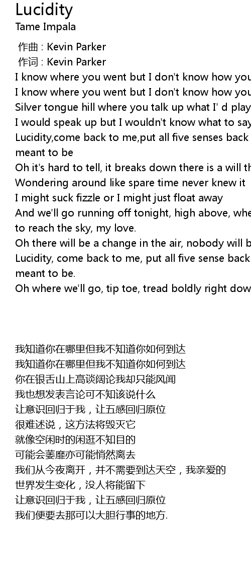 | [00:59.07] | Lucidity, come back to me, put all five senses back to where they' re meant to be |